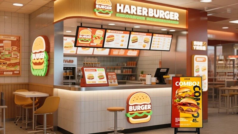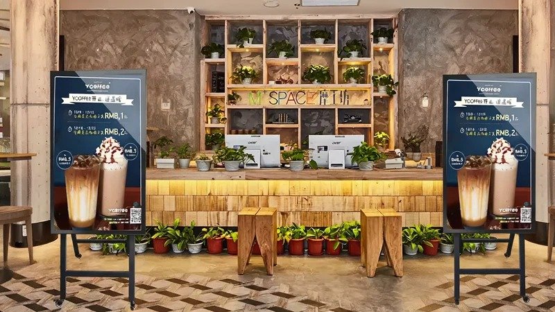 Portable Indoor Display is specially designed for fast food restaurants, burger shops and coffee and snack brands. It integrates the process of ordering guidance with brand visual communication. As a portable and mobile Advertising Screen, it can be flexibly deployed at the checkout counter, queuing area or self-service pick-up point, helping the store efficiently convey promotional information and the status of food delivery.